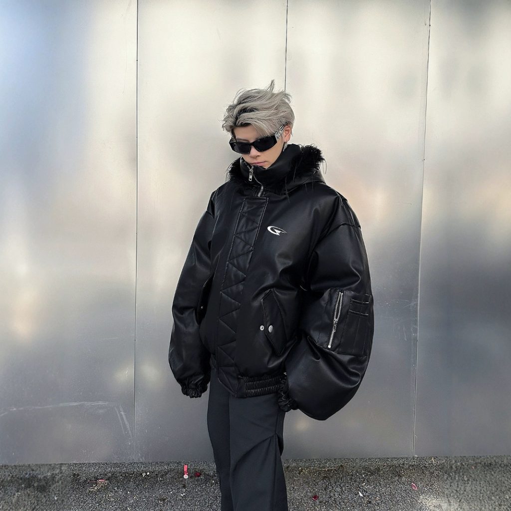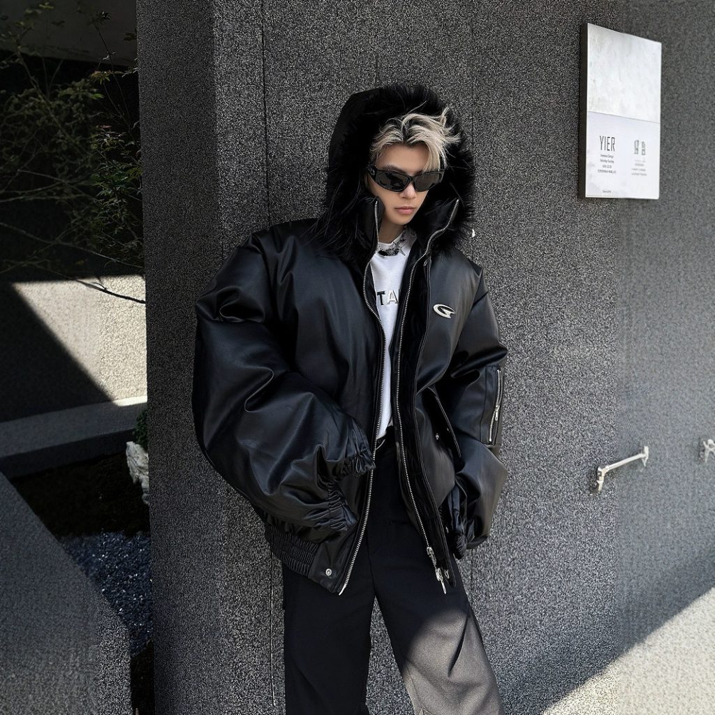 Abrigo De Algodón Con Capucha De Cuero PU, Top Cálido Y Holgado