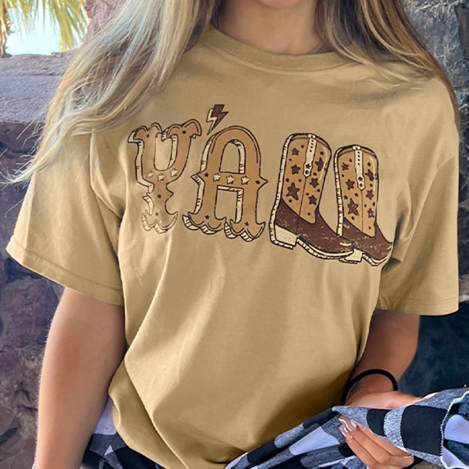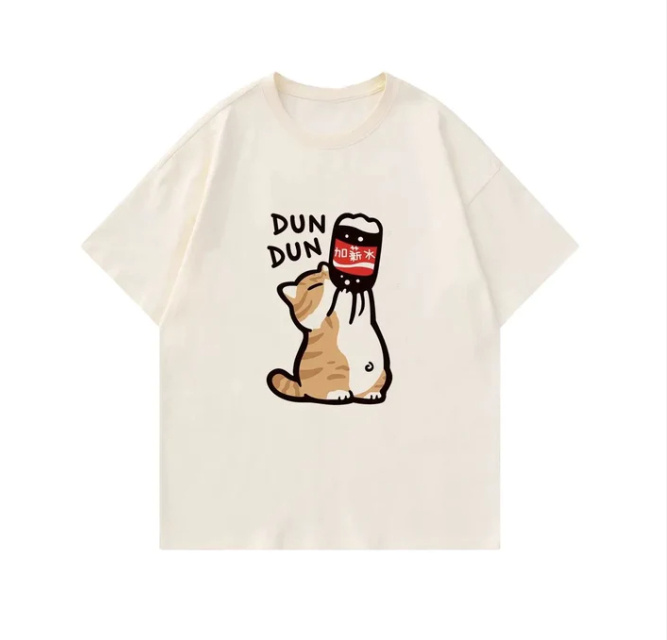 Camiseta informal de cuello redondo con estampado de dibujos animados europeos y americanos