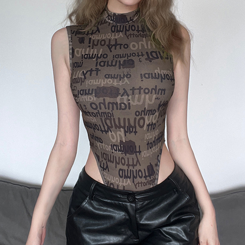 Mono fino sin mangas con estampado de letras de periódico antiguo y estilo retro