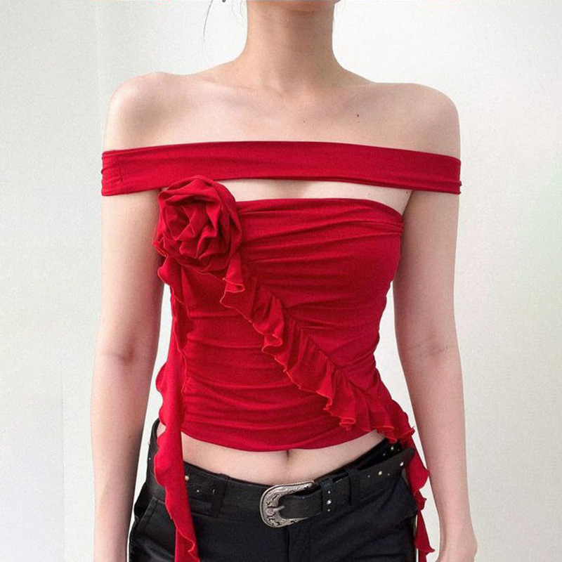 Sujetador ajustado con escote único irregular con diseño floral tridimensional