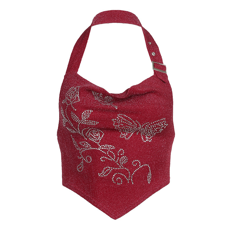 Camiseta interior ajustada con diamantes rojos