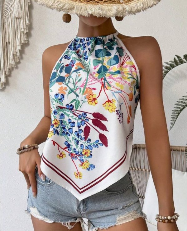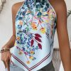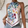 Camiseta sin mangas con cuello y muesca estampado