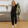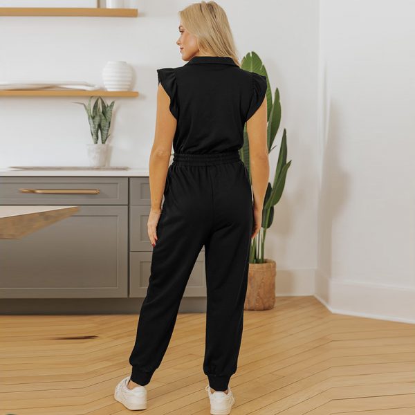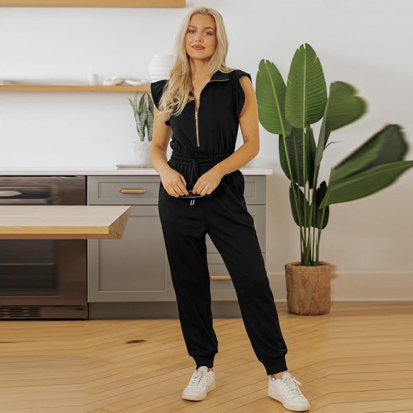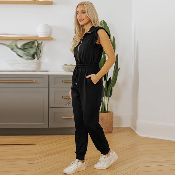 Mono multibolsillos de cintura alta versátil informal de color puro para mujer