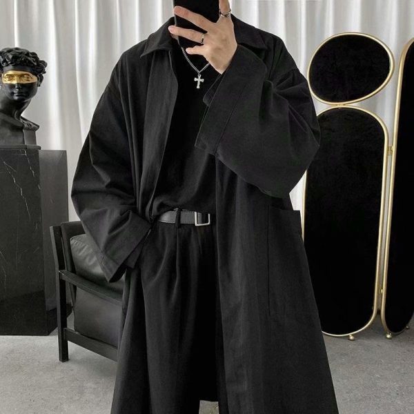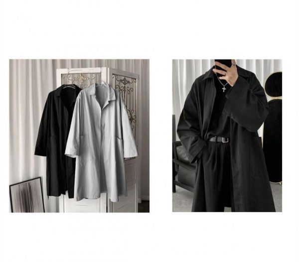 Otoño Nueva gabardina suelta para hombre Abrigo de longitud media