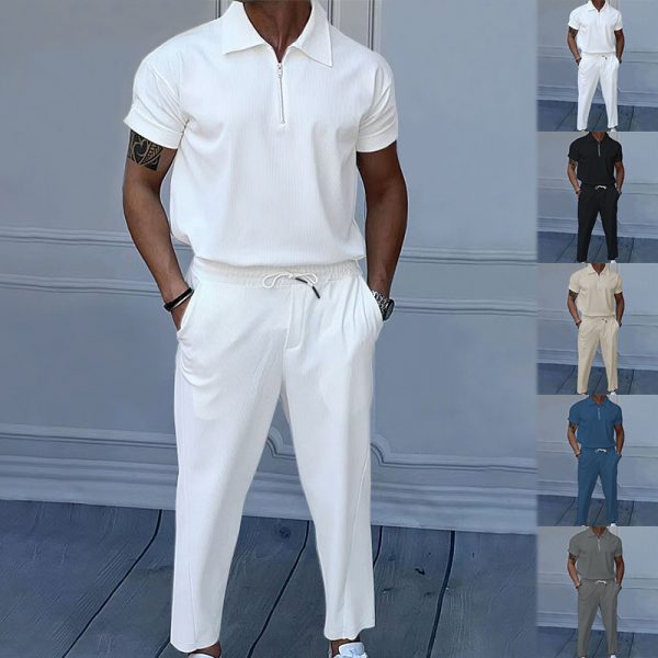 Ropa De Hombre Color Sólido Cuello Polo Manga Corta Traje
