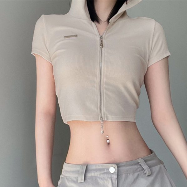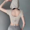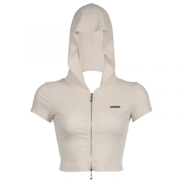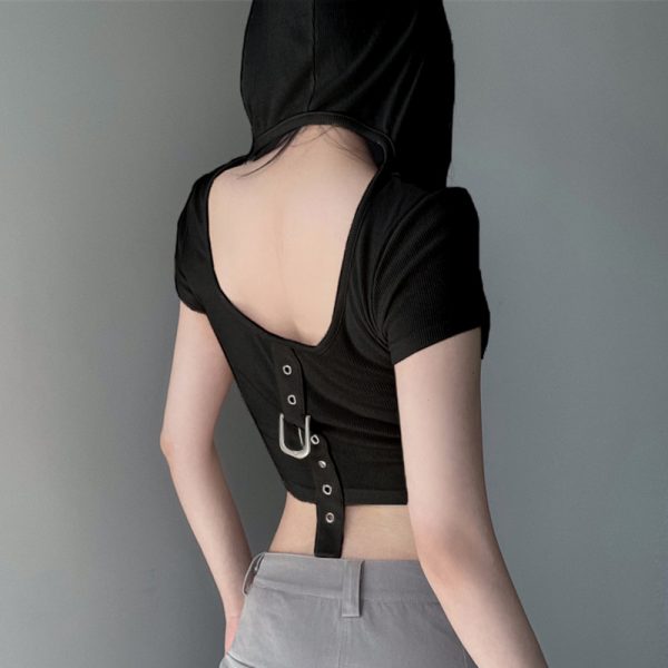 Sudadera con capucha y costura de cincha con hebilla de metal hueca y espalda descubierta