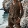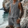 Traje casual con patrón vertical, pantalones cortos de camisa de manga corta con solapa delgada y botones
